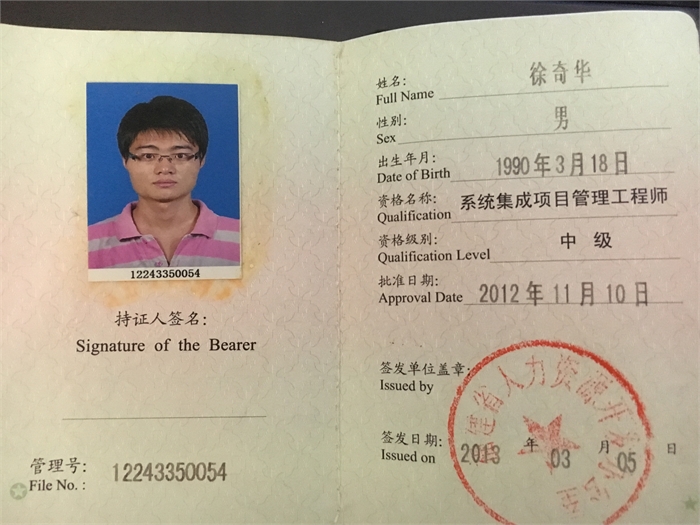 | 证书名称: | 系统集成项目管理工程师 | |
