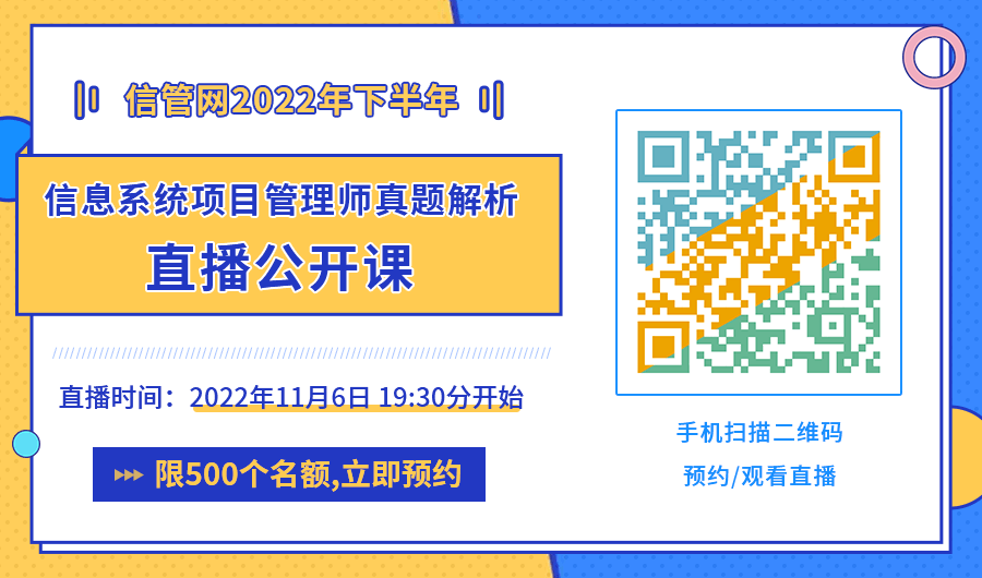 最后想说的肯定是希望各位同学养好精神,预祝大家顺利通过考试,拿到软考证书!同时信管网也会在考试结束之后更新2022下半年软考考试真题答案及解析,欢迎大家考后来对答案估分,还有真题解析公开课等着大家,敬请关注。