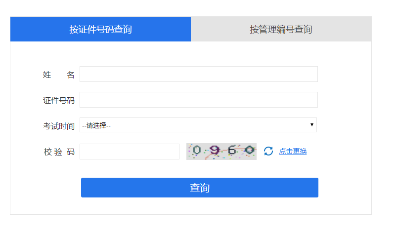 第三步:进入证书查询页面后,可以选择“按证件号码查询”和“按管理编号查询”,相信成绩查询的时候大部分考生都会忘了管理编号,所以请切换到“按证件号查询”,使用身份证信息查询成绩。